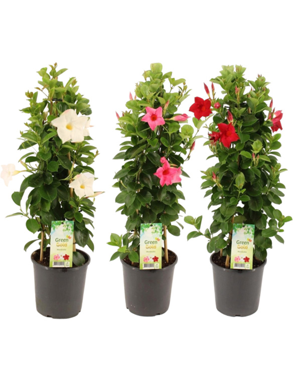 Gillar du färgglada blommor i trädgården som blommar länge? Då är Mandevilla Sanderi (bägarrankarsläktet) den perfekta växten. De vita, rosavita, rosa, mörkröda eller röda blommorna blommar flitigt hela sommaren. Växten producerar nya trumpetformade blommor till långt in på hösten. Förutom de vackra blommorna, har Mandevilla även blanka, gröna blad. Det är ett fantastiskt tillskott för trädgårde