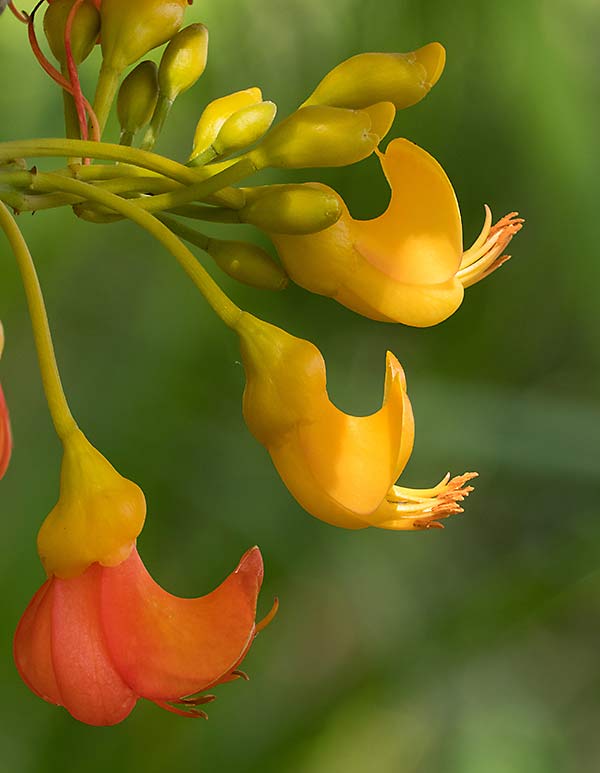 Växer upp ur en böna som ligger strax ovan jord. För att stammen ska förbli rak kan växten behöva stöd av en pinne. Liknar ett litet träd med sin raka, kala stam och sin krona av blad.