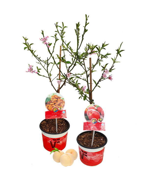 Prunus persica ’Peach me®’ och Prunus dulcis ’Nut me®’